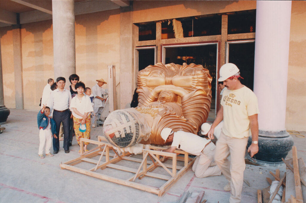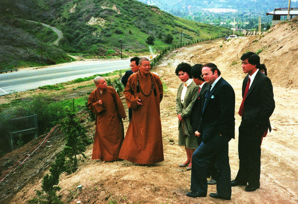 1976年,美國建國二百週年紀念,星雲大師率中國佛教會祝賀團來到美國,途經洛杉磯時,遇逢篤信佛教的揚州同鄉王良信先生表達獻地心願,誠邀大師於當地建寺。大師表示,自愧語言不同、經濟條件不夠、人才不足,即於當下婉謝。