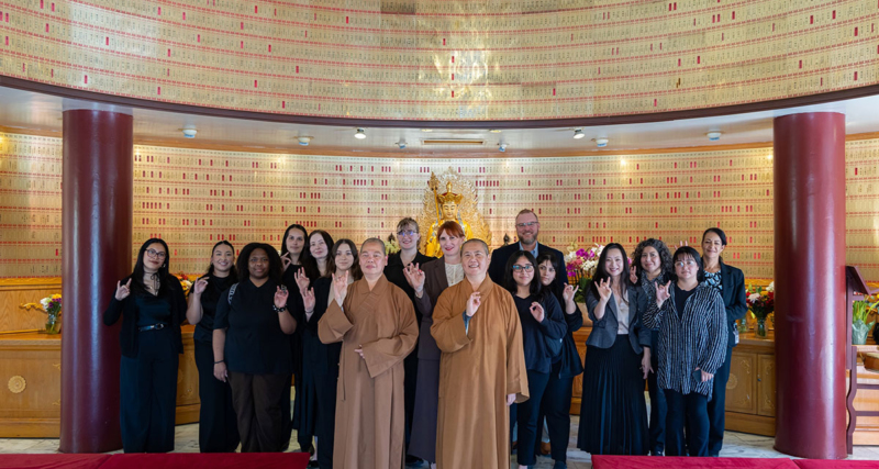 依空法師以幽默生動的語言,帶領學員探索佛陀最核心的教法——「四聖諦」與「十二因緣」。 佛光山西來書院及洛杉磯佛光青年二團共31位青年同霑法益。 青年們專注聆聽依空法師的引導,思考生命的起源與方向,體悟人間佛教的智慧。 青年們在笑聲與省思中,體會佛法的現代啟發力。