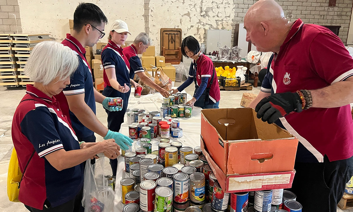 這是洛杉磯協會第二次與該單位合作,活動獲得各分會熱烈響應,捐贈物資不斷湧入。當日工作內容包括分類、檢查有效日期、打包與貼標籤,最後共整理成12個棧板(pallets)。
