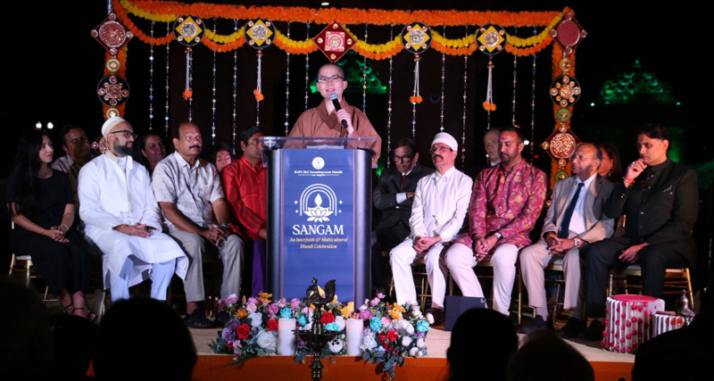 覺皇法師與洛杉磯協會與會者合影。 覺皇法師、洛杉磯協會與會者及導覽員Kal(右1)合影。 覺皇法師、洛杉磯協會與會者於神廟雄偉建築前合影。 覺皇法師、洛杉磯協會佛光人及導覽員Kal(左1)合影。 跨宗教交流活動,出席人潮踴躍。