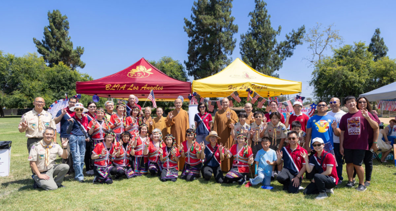 洛杉磯協會的佛光人身穿色彩繽紛的台灣原住民服飾,演繹〈站在高崗上〉舞蹈,最後以一字馬動作作結,贏得觀眾掌聲與喝采。 洛杉磯協會設有美國國慶主題的紙上尋字遊戲,請參加者在紙上圈出 Freedom(自由)等字,即可獲得三好貼紙等禮物。 小朋友可挑選各式國慶日紋身貼紙,由青年 Molly Huang 協助轉印。…