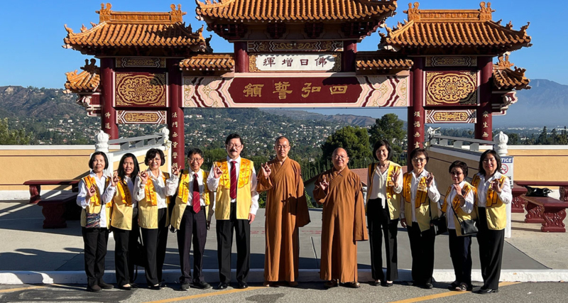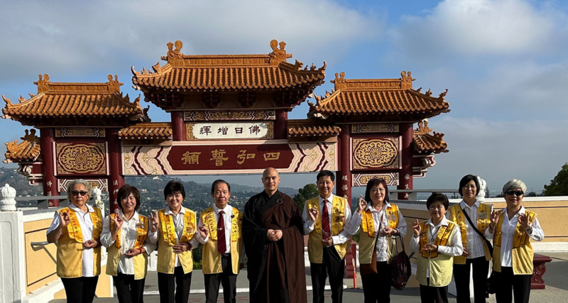 長堤市佛祖寺,適逢寺中舉行超薦法會,由監寺行定法師接待,於祖師堂進行供養儀式。 慧光寺創立住持慧敏法師、監寺慧德法師與佛光人合影。 般若寺住持源知法師率僧眾與佛光人合影。 華嚴寺住持法性法師與佛光人合影。 明燈光寺住持明宣法師與佛光人合影。 藥師寺住持如和法師率僧信二眾與佛光人合影。