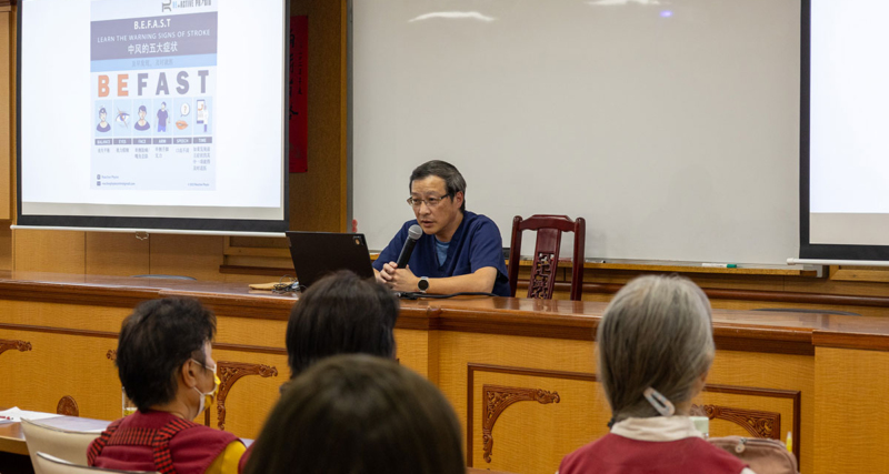 活動當日,主辦單位在講座前提供量血壓服務。 活動當日,主辦單位在講座前提供量血壓服務。 活動當日,主辦單位在講座前提供量血壓服務。 講解問卷填寫,社區推展經理Fei Huang(左),中風護理團隊Christine Lopez(右) 講座會後營養師與藥劑師為民眾解答飲食與用藥疑問。…