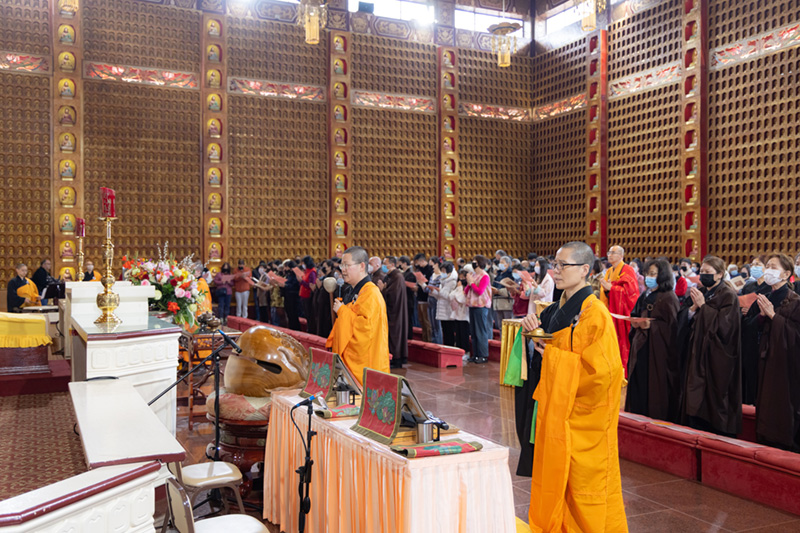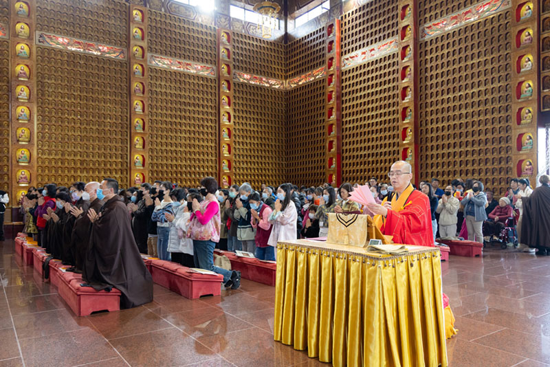 法會在〈爐香讚〉聲中展開,三稱「南無本師釋迦牟尼佛」、諷誦《般若波羅蜜多心經》、禮拜諸佛、佛前上供、誦念三皈依文、恭讀佛光山開山祖師星雲大師〈新春祈願文〉,最後以〈佛光四句偈〉回向。