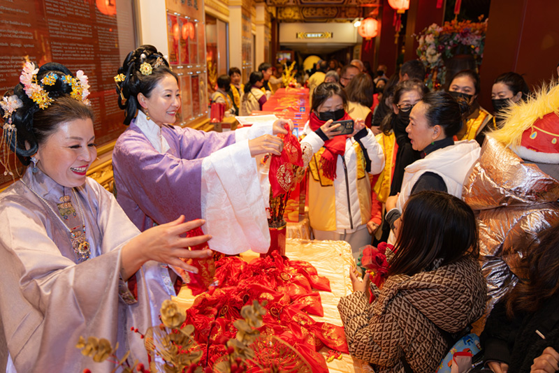 隨後與會嘉賓依序致意拜年,包括國際佛光會洛杉磯協會會長蔡月琴、督導陳倫傑、督導吳帥倫、核桃市副市長伍立倫、都市開發委員Jenny Wang,以及華源食品公司Jeff,向大眾祝賀新春吉祥、福慧增長、健康平安、諸事順遂,並共同祈願世界和平,現場氣氛溫馨熱絡。