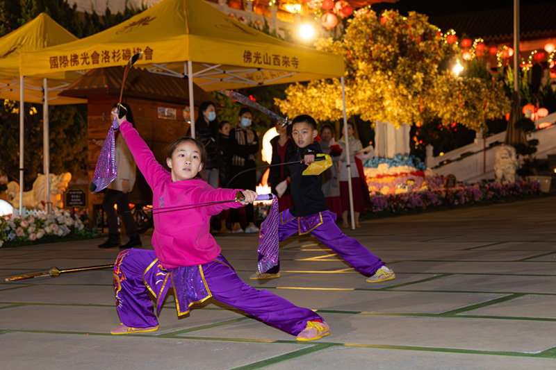 活動內容包括獻燈祈福、諷誦《般若心經》、恭讀佛光山開山祖師星雲大師〈新春祈願文〉,以及春聯揮毫與文化表演等,動靜皆宜。點燈儀式中,與會者手持心燈,虔誠祝禱,祈願新年平安順遂、闔家安康,每一盞燈皆象徵智慧光明,照亮未來道路。