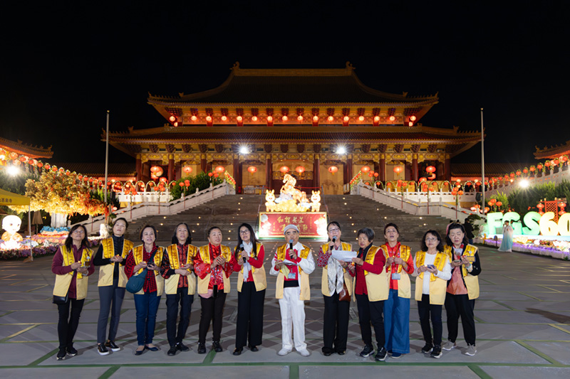 法會結束後,大眾在成佛大道欣賞文化表演,各分會帶來節目同樂,包括舞蹈、樂團演奏,以及人間音緣歌曲〈點燈〉合唱等表演。柔斯蜜分會郭栢偉扮演財神爺,手捧金澄澄大元寶發送糖果,甫一現身便被大眾圍住。隨後,大眾以財神爺為首,手搭肩成接龍,繞著成佛大道跑了起來,互道恭喜,笑聲陣陣。