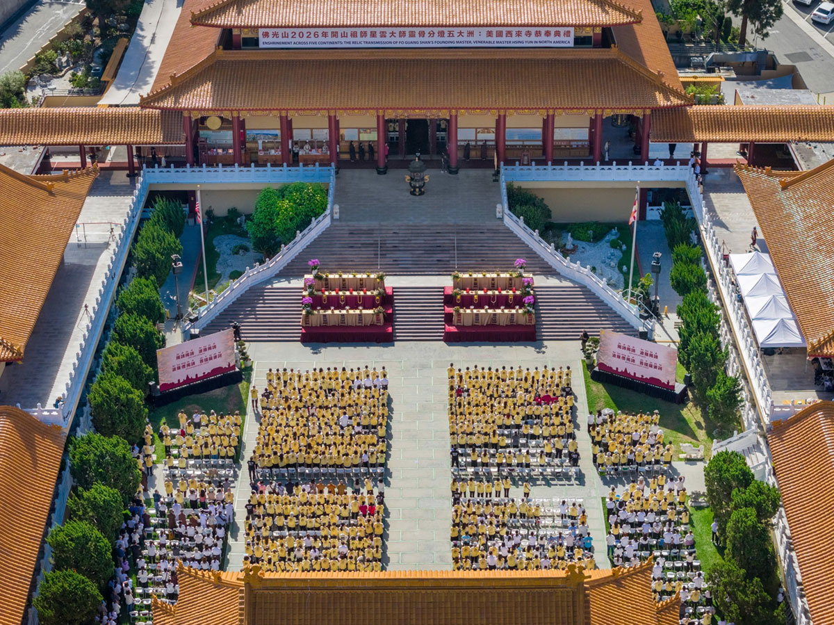 人間社 潘青霞 美國洛杉磯報導】西來寺是佛光山開山祖師星雲大師自台灣邁向國際,在海外創建的首座道場。時值大師圓寂三周年,靈骨分燈五大洲12處道場,西來寺住持慧東法師率北美洲國際佛光會各協會代表、信徒與法師等84人專程返台,在3月19日迎奉,並於3月21日回到西來寺舉行恭奉典禮,以及「憶師恩讚頌會」,深具歷史意義。當地30座道場、26個協會、近兩千名信眾齊聚恭迎,場面莊嚴隆重。