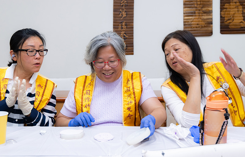 課程尾聲,王儷玲笑問:「下次還要參加這樣的手作體驗嗎?」佛光人齊聲回應「要!」隨後手捧成品,高喊「Happy Earth Day」,留下合影,笑容滿溢。