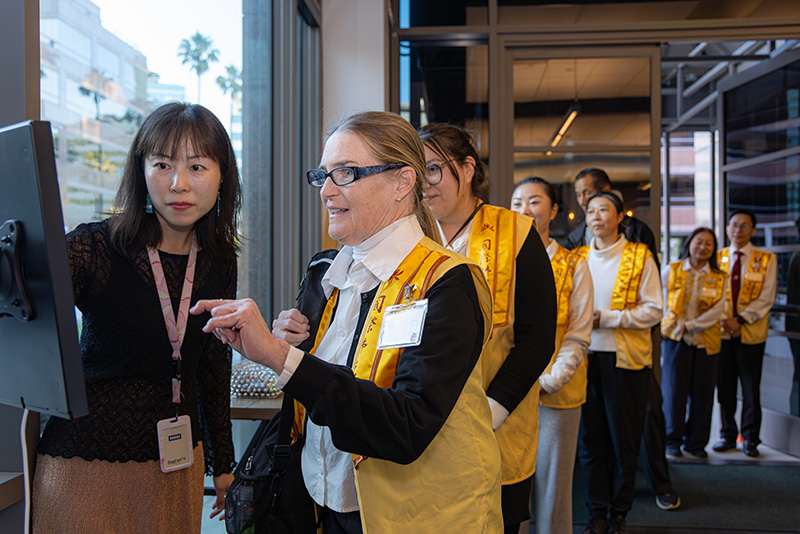 【人間社 潘青霞 美國洛杉磯報導】應日本國際交流基金會洛杉磯分部 (The Japan Foundation Los Anglels, JFLA)邀請,佛光山西來寺社教本土組慧澤法師,作為漢傳佛教臨濟宗代表,於4月22日晚間前往基金會,參與「兩大傳統的《心經》誦持」工作坊(Heart Sutra Recitation in Two Traditions)。慧澤法師與日本曹洞宗代表Shumyo Kojima法師(Zenshuji Buddhist Temple住持)共同帶領活動,共約45人參與。兩位法師引導大眾體會兩大傳統在《心經》誦持上的精神意涵,與會者亦分享法喜。
