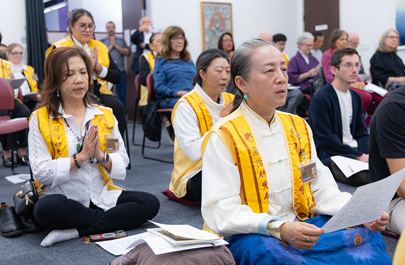 在聲音流動之間,參與者逐漸沉澱心念,有人閉目專注,有人隨聲低誦。