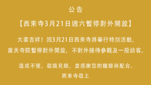 西來寺3月21日週六暫停對外開放 2026.03.09