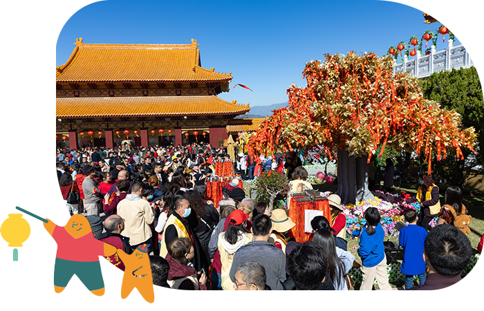 2025年的春節平安燈法會從1月29日進行至2月12日(農曆正月初一至十五),佛光山西來寺規劃一連串啟發歡喜心、慈悲心與智慧的大小活動,邀請新朋友與老朋友,在新的年頭結伴、闔家來到佛光山,親近佛、親近法、親近僧,親近自己的內在圓滿。