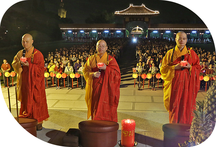 有關「點燈」、燃燈的來源,與佛教有著密切關係。據載,永平十四年,漢明帝為了慶祝佛法在中國大放光明,下令全國在農曆正月十五日元宵節晚上,一律張燈結綵,表示對佛教的崇敬。佛教的典籍《大唐西域記》,也記載著印度摩竭陀國在正月十五日,僧俗雲集觀看佛陀舍利放光雨花的歷史。可見放花燈、點燈的習俗,在佛教界早已相當流行。願力無邊,燈明無盡,《阿闍世王授決經》記載貧女難陀以能誠心之故,因燃一燈的功德,蒙佛授記,當來作佛。由此可知,功德不在於大小,只在於吾人之用心是否專誠!